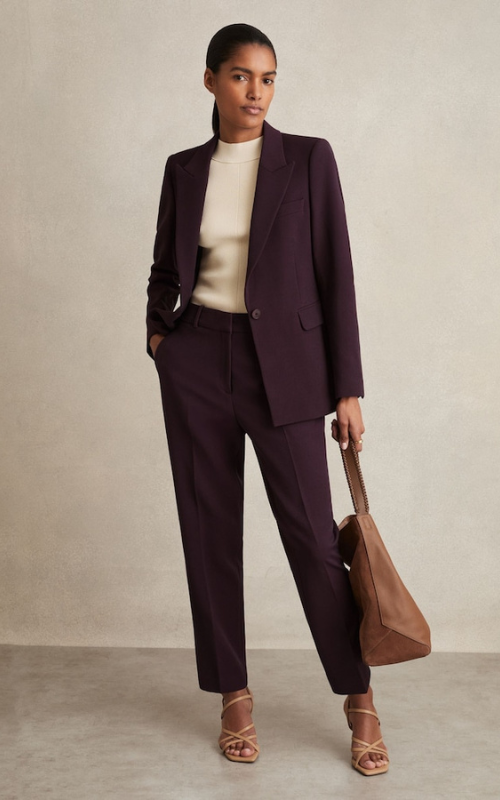 This tailored suit comes in a beautifully rich plum, purple colour that will get you noticed.